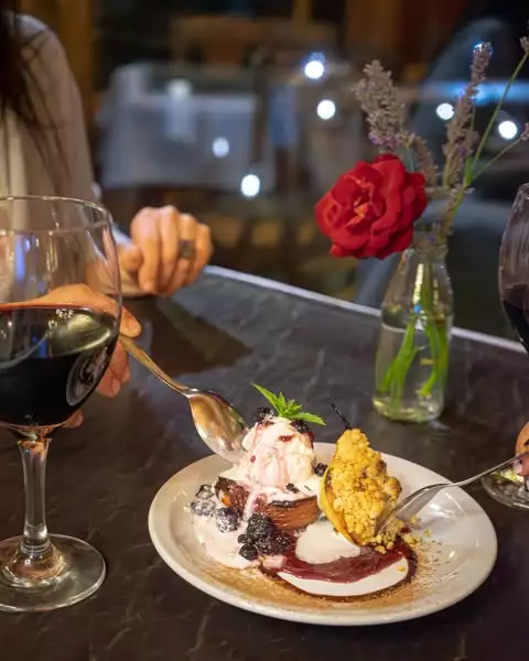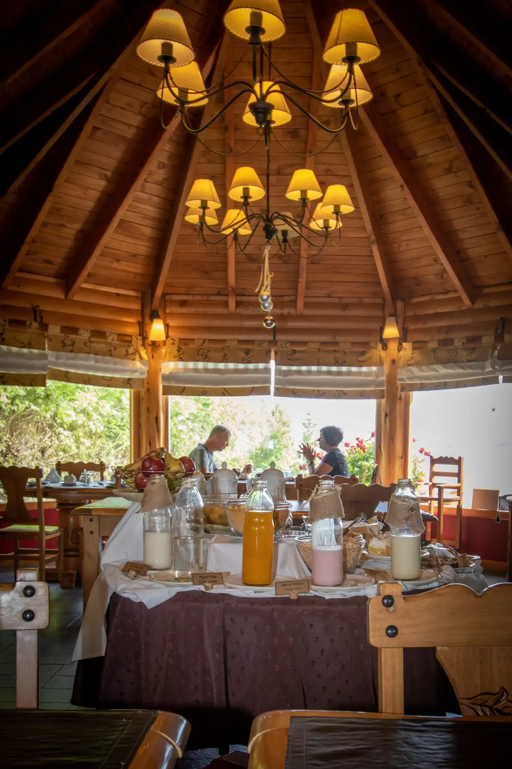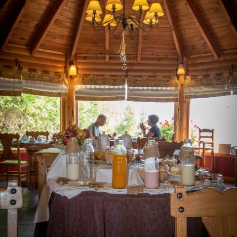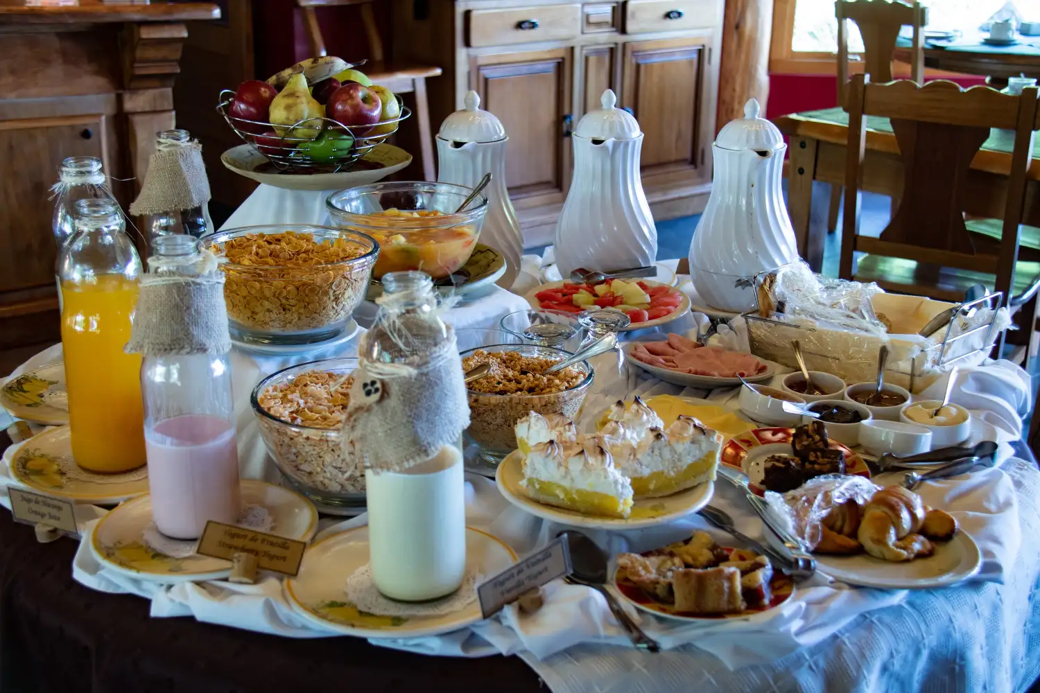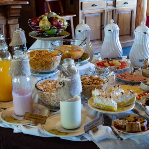 Por la mañana le brindamos un amplio desayuno con dulces y tortas caseras hechas con frutos de la región, donde predomina el calafate, planta autóctona de la zona, y cuyos frutos podrá ver en el parque de la misma Hostería. Por la noche puede degustar deliciosos platos en nuestro restaurante, acompañados con los mejores vinos de Argentina.